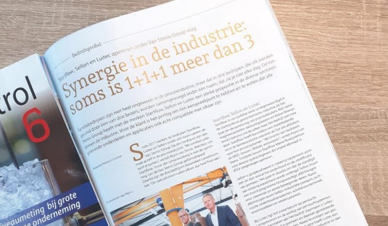 Soms is 1+1+1 meer dan 3. In de nieuwe (6e) editie van Process Control vertellen wij over onze synergie in de industrie. Hierin leggen we uitgebreid uit wat de samenwerking tussen Startflow, Sellon en Luitec onder de Van Stenis Group-vlag voor u kan betekenen. Benieuwd naar het hele interview?